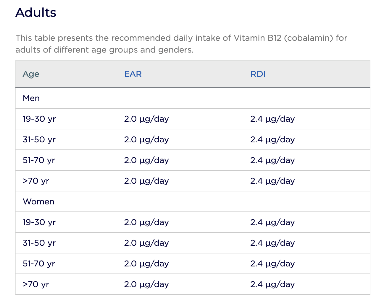 A woman of my age needs ~2.4ug (micrograms) a day but I know you might not have the same requirements as me so I’ve included the RDIs for Australians below so you can review your needs. Once you know your needs, you need to plan how to get it. To make this as quick and painless as possible, I’ve analysed 5 of the most common animal products consumed in Australia so you can review them.